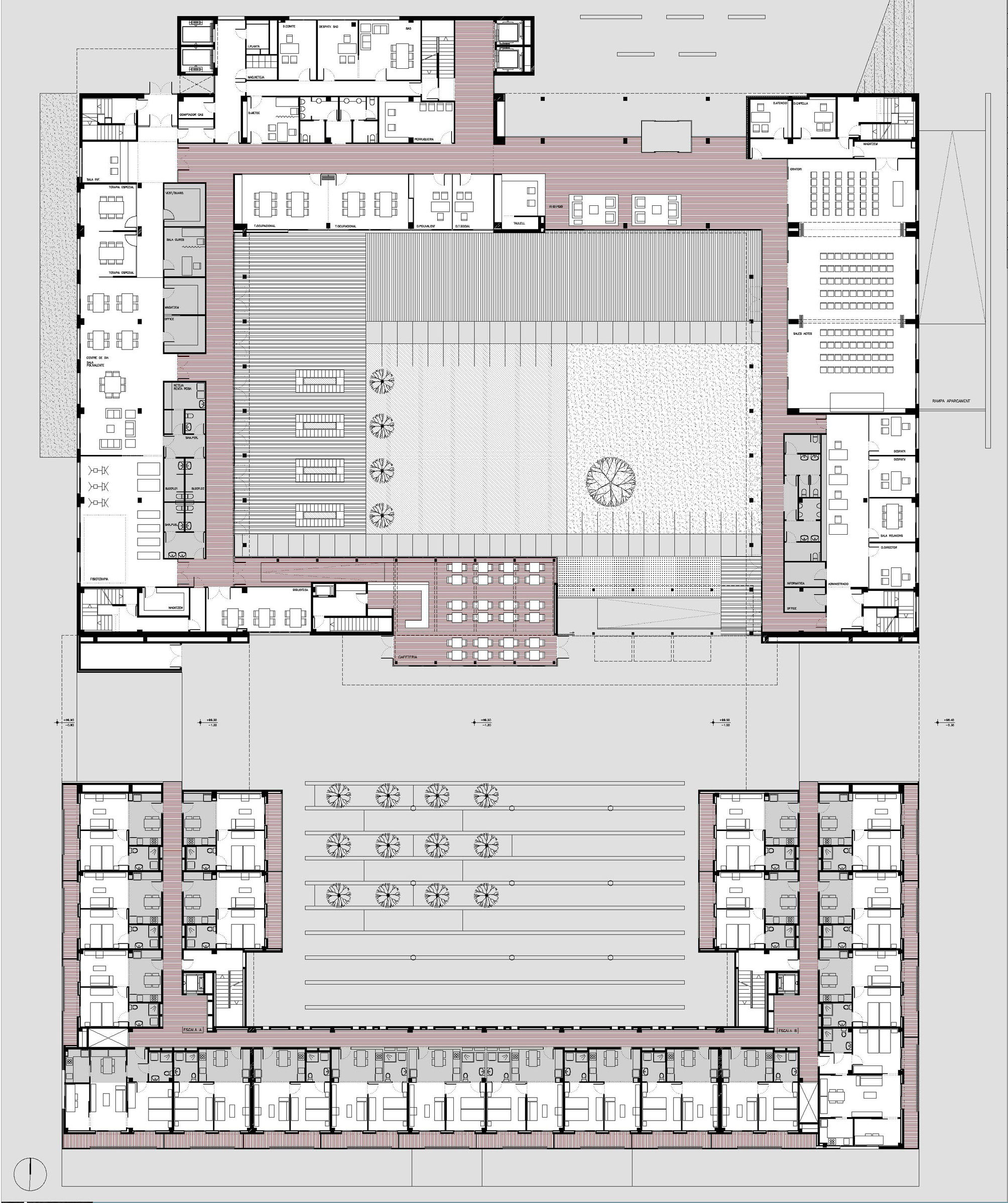 Proyecto de residencia socio-sanitaria para enfermos psiquicos y tercera edad con centro de día y 64 viviendas asistidas 3a edad en el sector El Nadal de Vic. Generalitat de Catalunya, INCASOL, Ajuntament de Vic y Hospital de la Santa Creu de Vic.